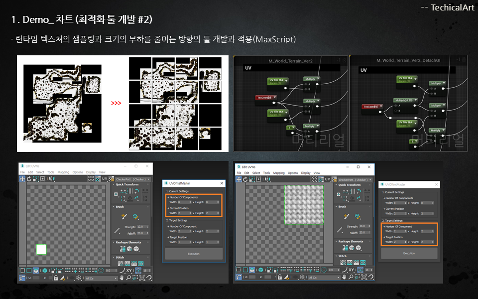 그래픽 리소스 제작에 필요한 최적의 방식을 구성하는데 기여 할 수 있습니다. 작업에서 자동화 툴을 통해서 반복되고 번거로운 제작 외 이슈들을 해결할 수 있습니다.