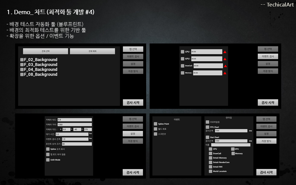 프로젝트 마무리와 출시를 위해 제작된 리소스의 최적화와 타겟 플랫폼에 맞는 최적화 그리고 전략적인 퍼포먼스 개선을 위한 협의와 이슈 대응 솔루션