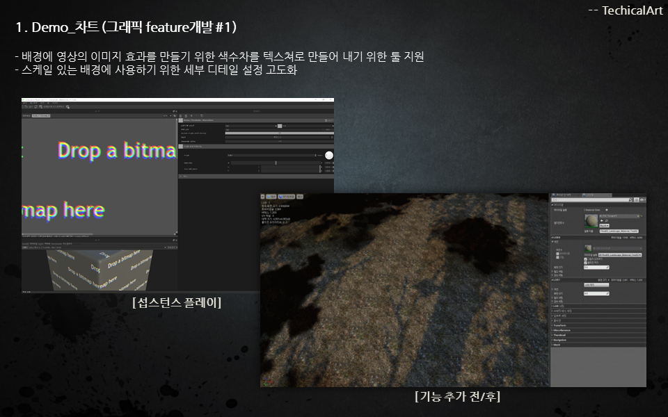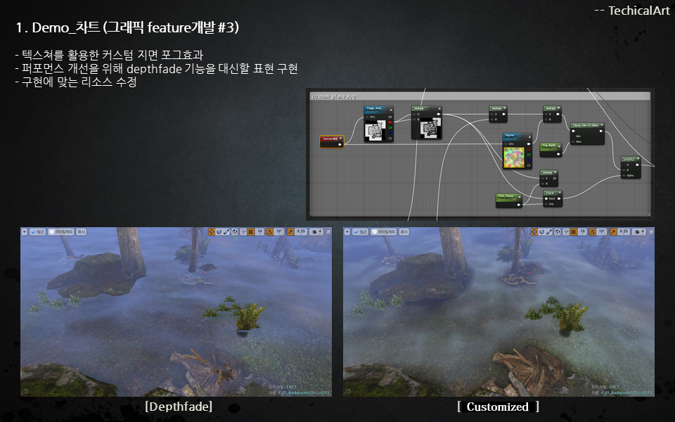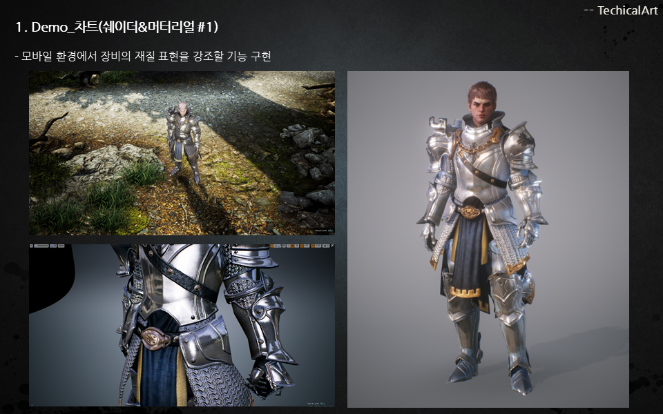 프로젝트 초반 설정에서 상용화 엔진의 특성에 맞게 아트 디렉션의 스타일을 표현하기 위한 방법과 품질 설정과 효과적인 제작 방식의 가이드 솔루션